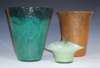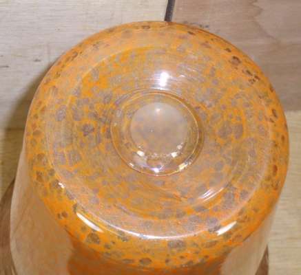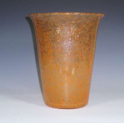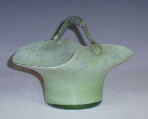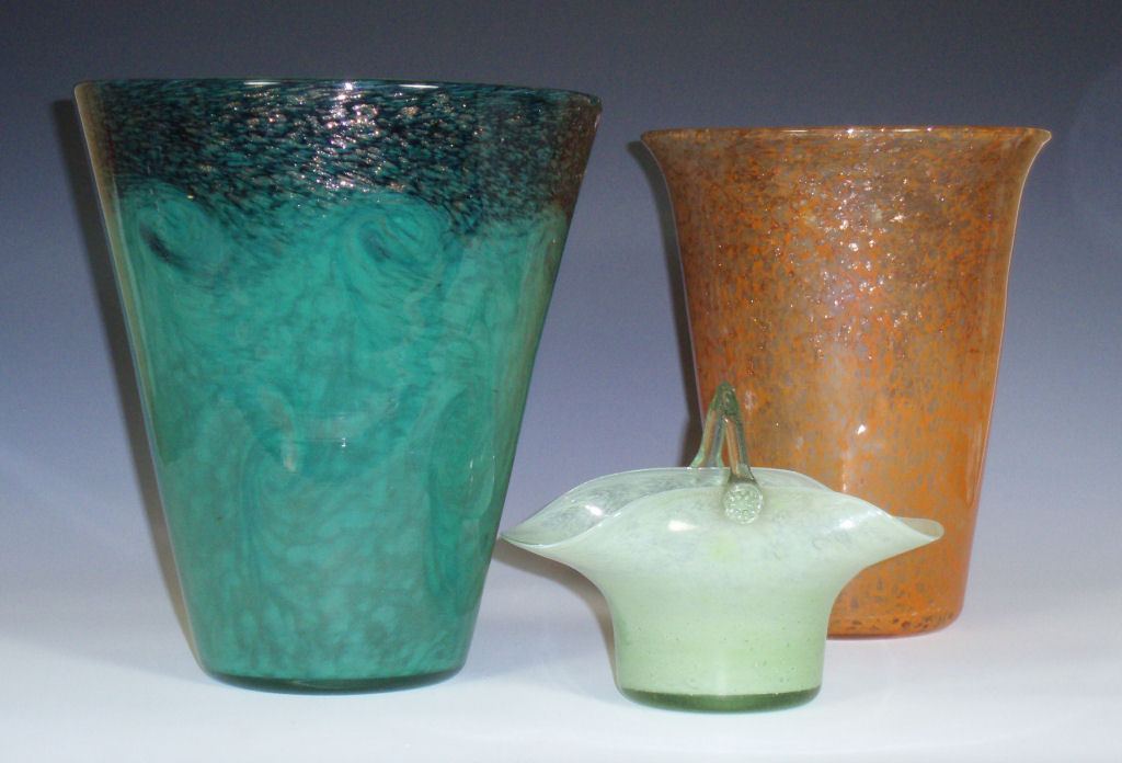 of tapered form, 24cm high; a Monart vase, of tapered form with flared rim, orange rising to aventurine, 22.5cm high; and a pale green art glass basket, 12cm high (3)
