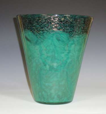 A large green and aventurine Strathern glass vase