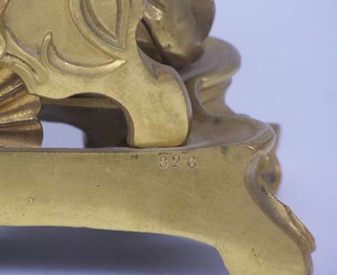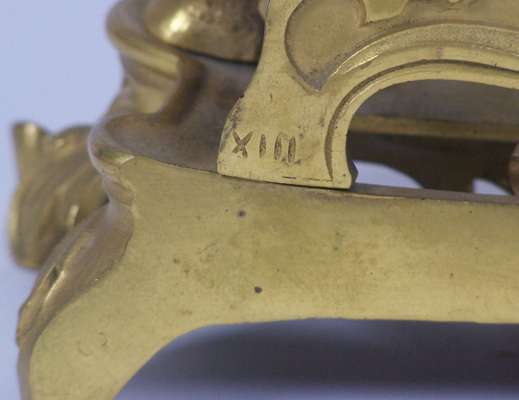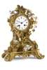 the white enamel dial signed DENT A PARIS, with a bell striking eight day movement, the ornate rococo scroll case with applied flower head decoration