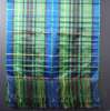 48cm wide; a red tartan silk stole with short fringe ends, 46cm wide; and a purple silk parasol overlaid in black lace with rustic form ivory loop terminal and carved ivory finial to tip, 78cm long (3)
