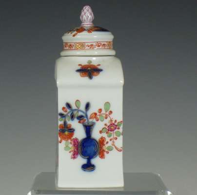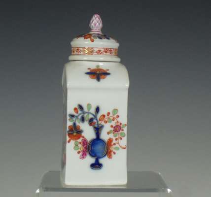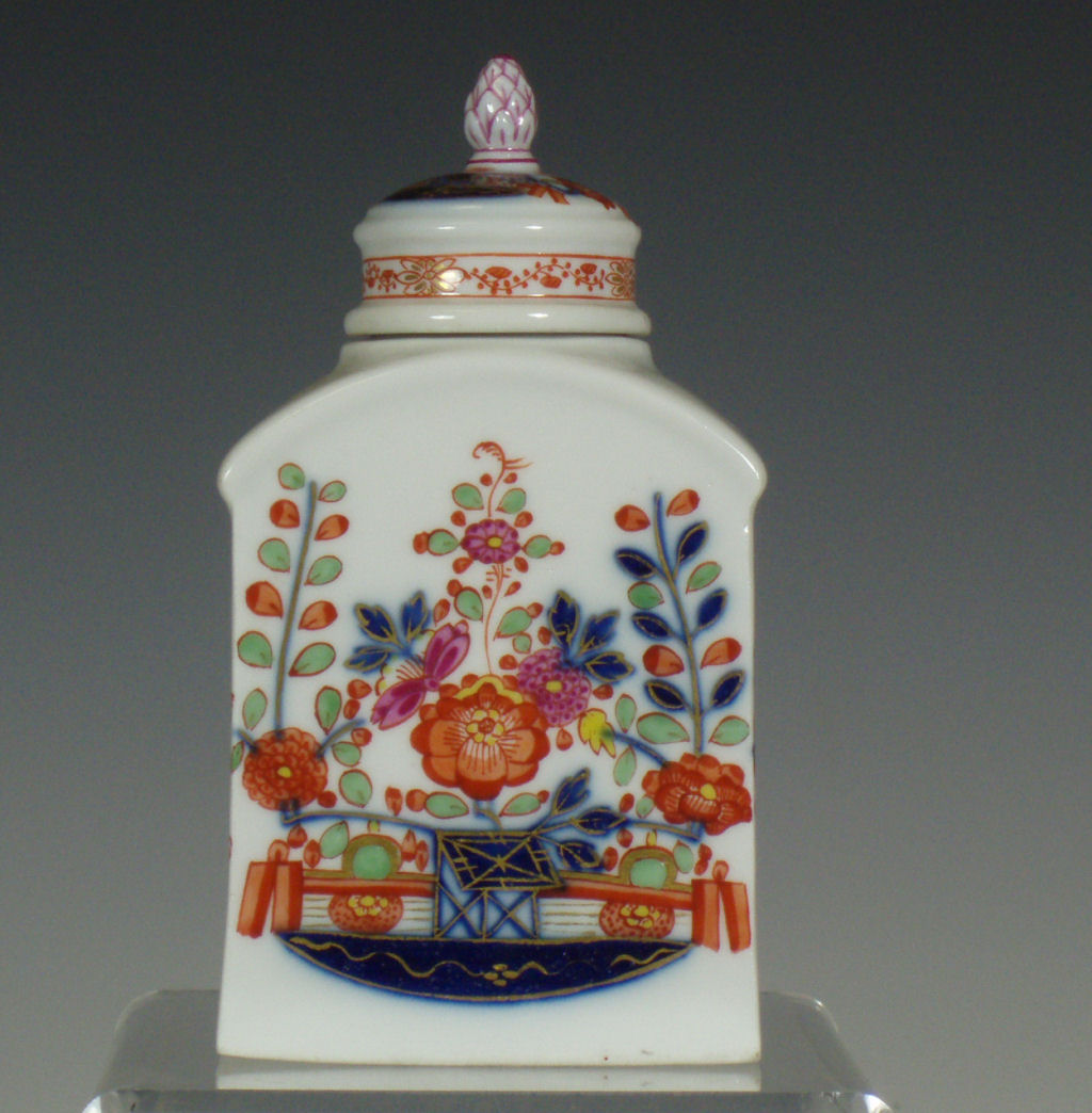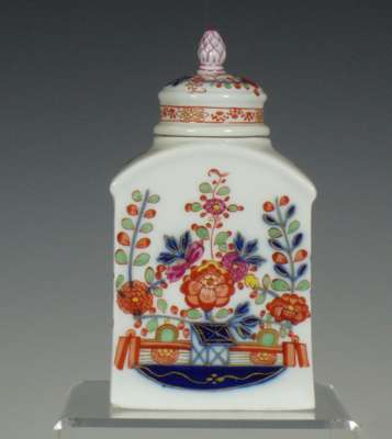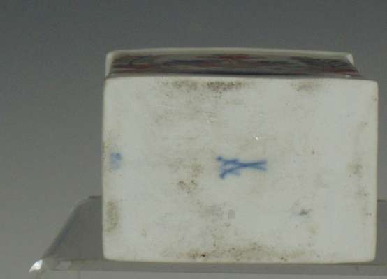 of rectangular section decorated with flowers in the imari palette, blue crossed sword marks to base