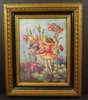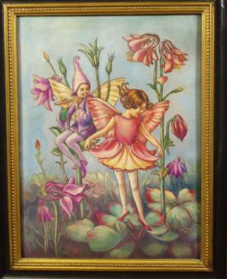 depicting fairies playing amidst flowers, later incised and printed marks, in a giltwood frame with an ebonised slip