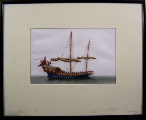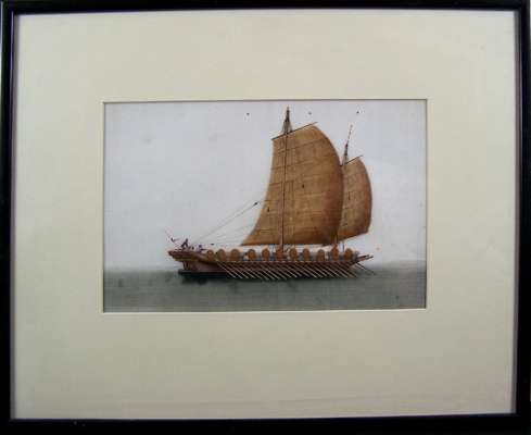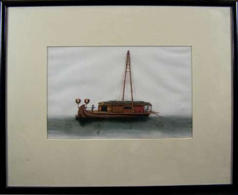 each depicting a different kind of boat, each approximately 18cm x 28cm; together with a watercolour of two birds amongst flowers; and another of three figures (8)
