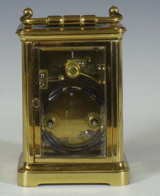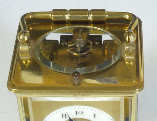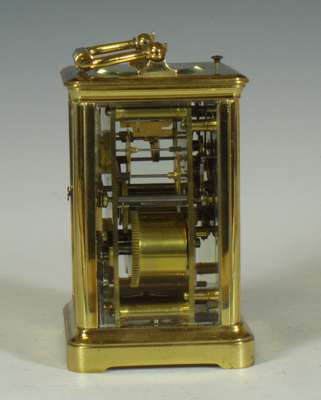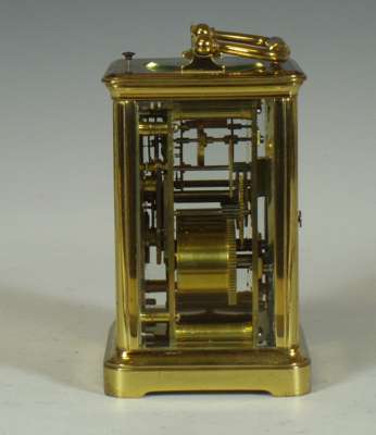 with white enamel dial and Arabic numerals, the movement striking on a gong