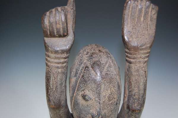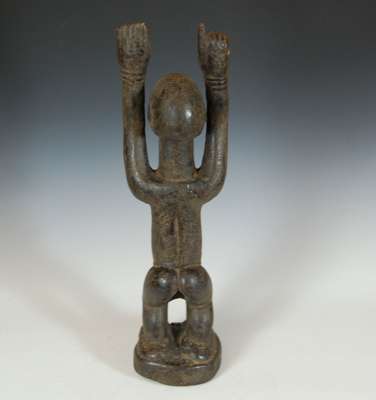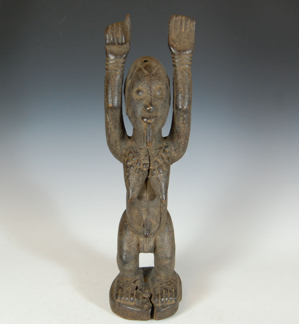Ethnographic Interest A carved wood figure with raised arms, probably Dogon, Mali