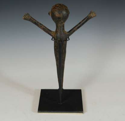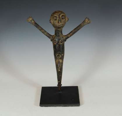 48cm high; and an iron figure with raised arms, probably Tikar, Cameroon, with a metal stand, figure 32cm high (3)