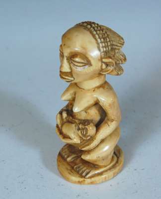 Ethnographic Interest An early 20th century carved ivory maternity figure, probably Lega, Congo