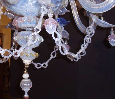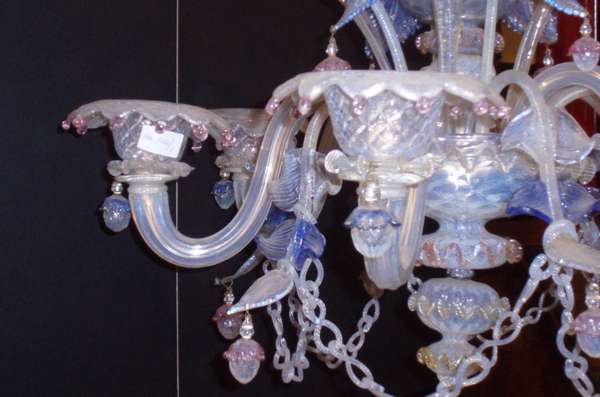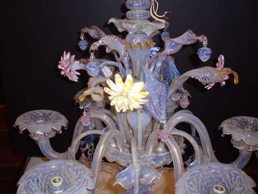 the glass column with six scrolling branches and with multiple floral and foliate design inserts