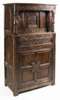 the moulded rectangular top over frieze panel, single cupboard door, flanked by panels and baluster turned columns, single long drawer, cupboard enclosing shelves raised on block feet