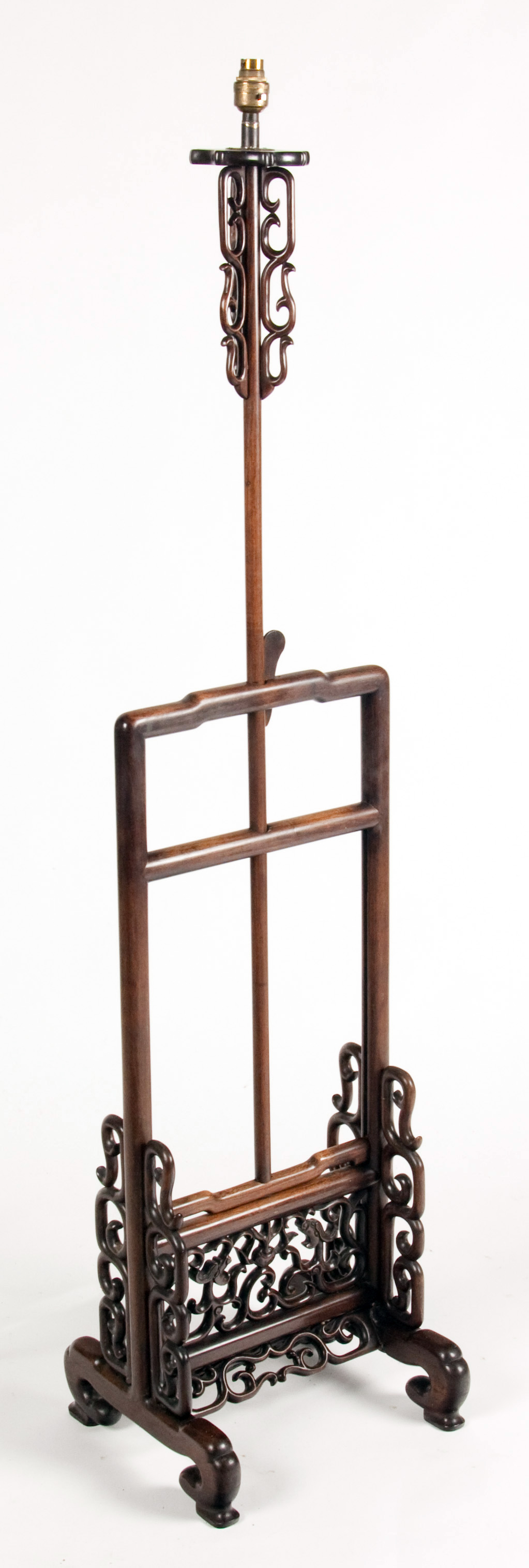 A Chinese hardwood adjustable standard lamp