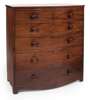 two short over four graduated cock-beaded long drawers, raised on bracket feet