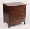 the crossbanded top over four ebony strung graduated long drawers, shaped apron raised on bracket feet
