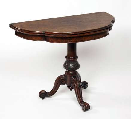 A Victorian burr walnut foldover card table