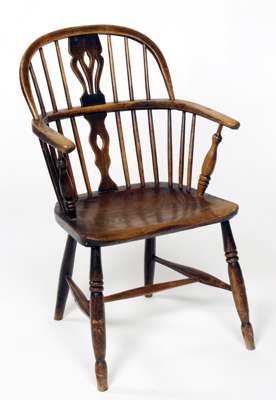 A mid 19th century yew wood and elm Windsor chair Possibly by Thomas Simpson of Boston
