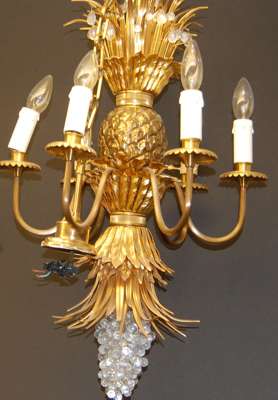 the central section shaped as a pineapple with six scrolling branches, over a glass bead base (2)