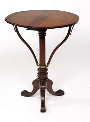 the circular top raised on baluster turned column, carved cabriole tripod legs terminating in pad feet