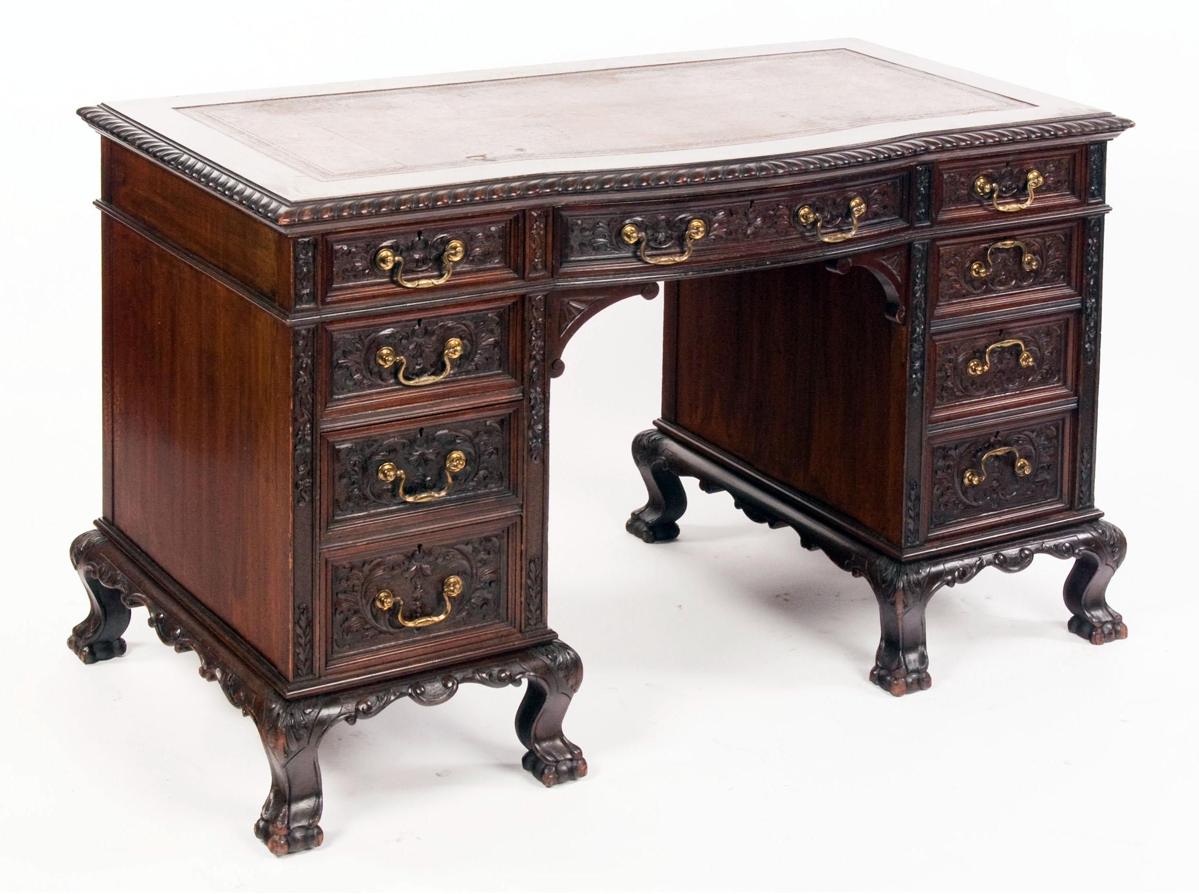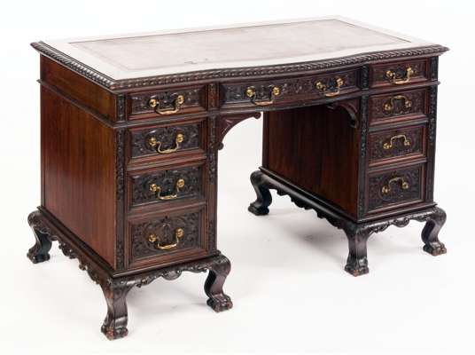 A Victorian acanthus carved mahogany desk By S. H. Jewell, Little Queen Street, Holburn