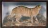 the wildcat standing on a naturalistic base, in a glazed case, trade label to verso