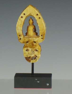 depicting a skull surmounted by a seated figure of a Buddha in scrolling aureole, on a later stand