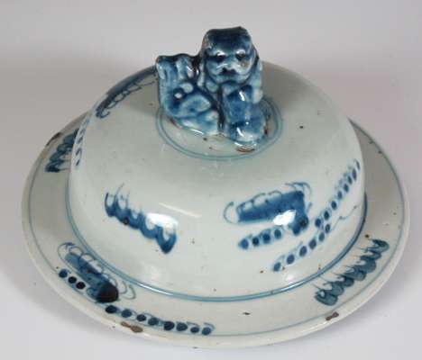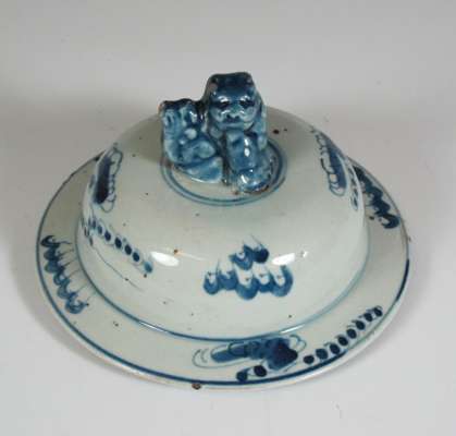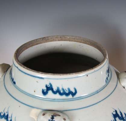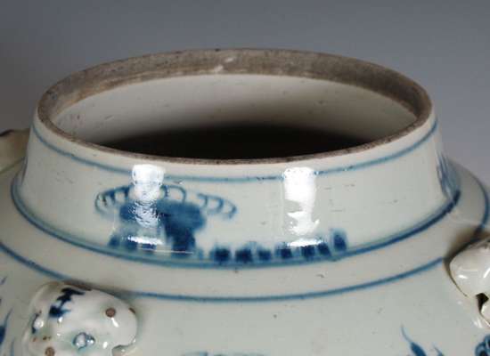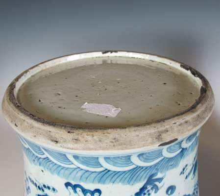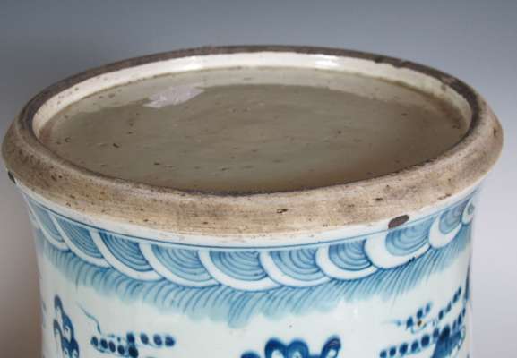 Two Chinese blue painted temple jars and covers In the Kangxi manner, but later
