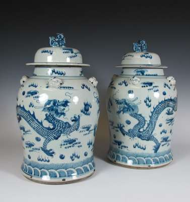 each of baluster form decorated with dragons amidst clouds chasing flaming pearls (2)