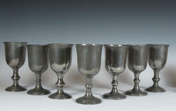 with various marks, comprising: seven goblets, three plates, two candlesticks, two chamber sticks with snuffers, two mugs and two flagons (18)
