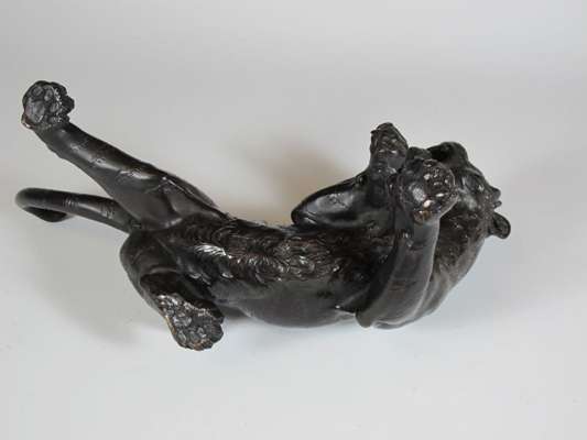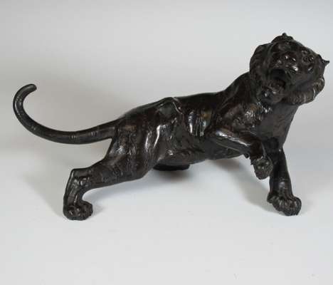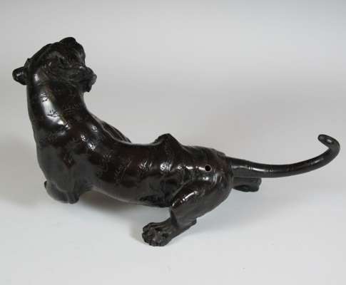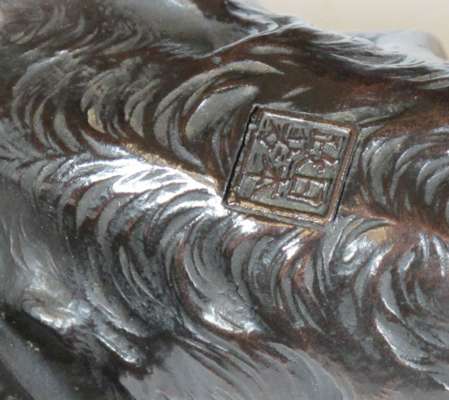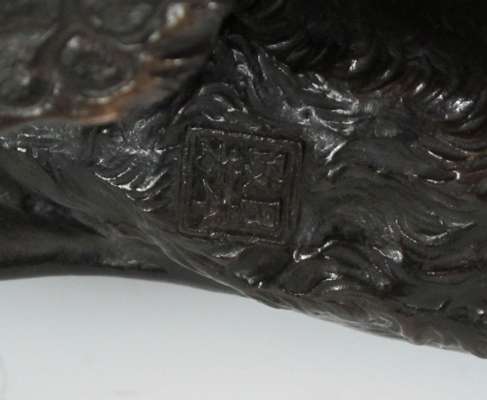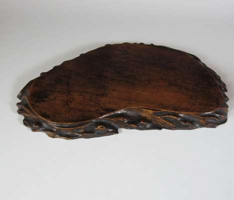 composed of two sections, each section with a cartouche containing a four character mark, on a hardwood base