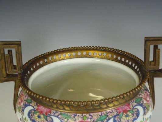 A porcelain and brass mounted urn In the Chinese 18th century style