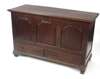the moulded rectangular lid over three panels above two moulded short drawers, raised on bracket feet
