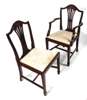 each with a moulded arched frame over pierced vertical splat, mounted by carved wheat ears. drop-in pad seat, raised on reeded tapering square legs terminating in spade feet; including two carvers (10)