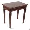 the moulded rectangular top enclosing wells and compartment, over a closed fretwork frieze panel, raised on tapering square fluted legs