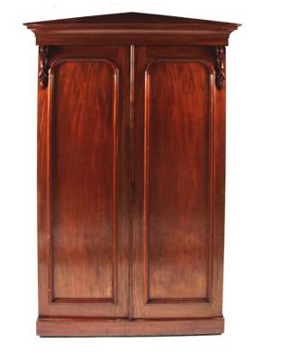 the projected moulded cornice over two beaded doors flanked by carved floral brackets, raised on plinth base