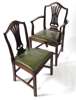 each with moulded arched top-rail over pierced vertical splats, green drop-in pad seat, raised on square legs united by H-frame stretchers; including two carvers (10)
