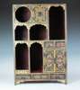 of tall rectangular form with asymmetric shelves and drawers, painted with floral motifs and scroll work