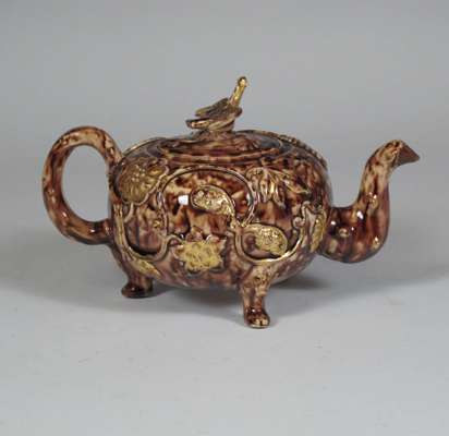 A Staffordshire 'Whieldon type' globular teapot and cover