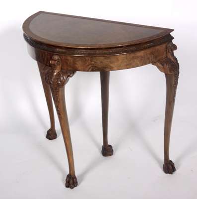 A Georgian style walnut demi-lune card table