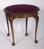 the moulded acanthus carved top, enclosing red baize lining, plain frieze panel, raised on cabriole legs with elaborate acanthus carved brackets, terminating in hairy paw feet