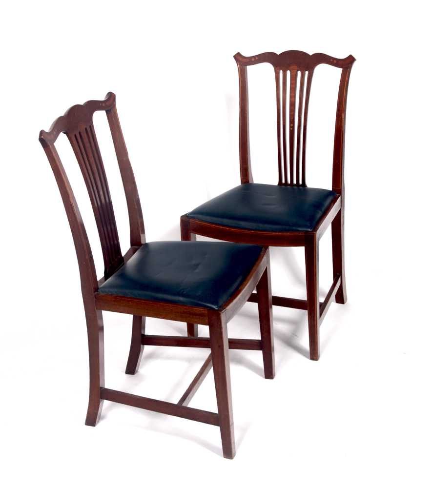 A set of eight Edwardian mahogany inlaid chairs Stamped "55685"
