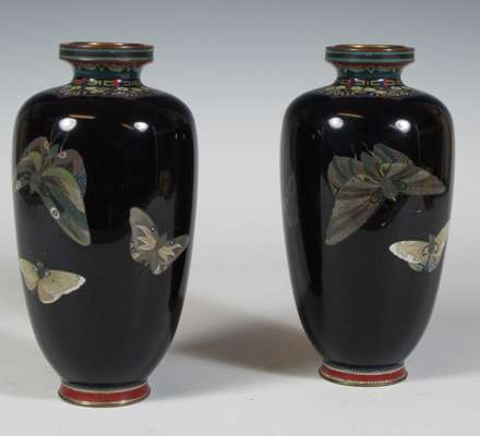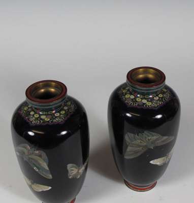A pair of Japanese cloisonné enamel vases Meiji Period