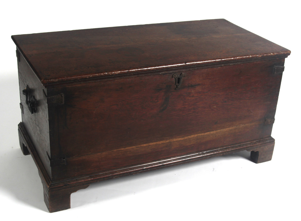 the moulded rectangular lidded top over large handles, raised on bracket feet