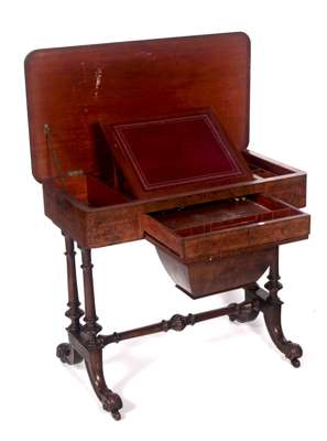 A Victorian walnut and mahogany work table By Edwards & Sons, Newcastle