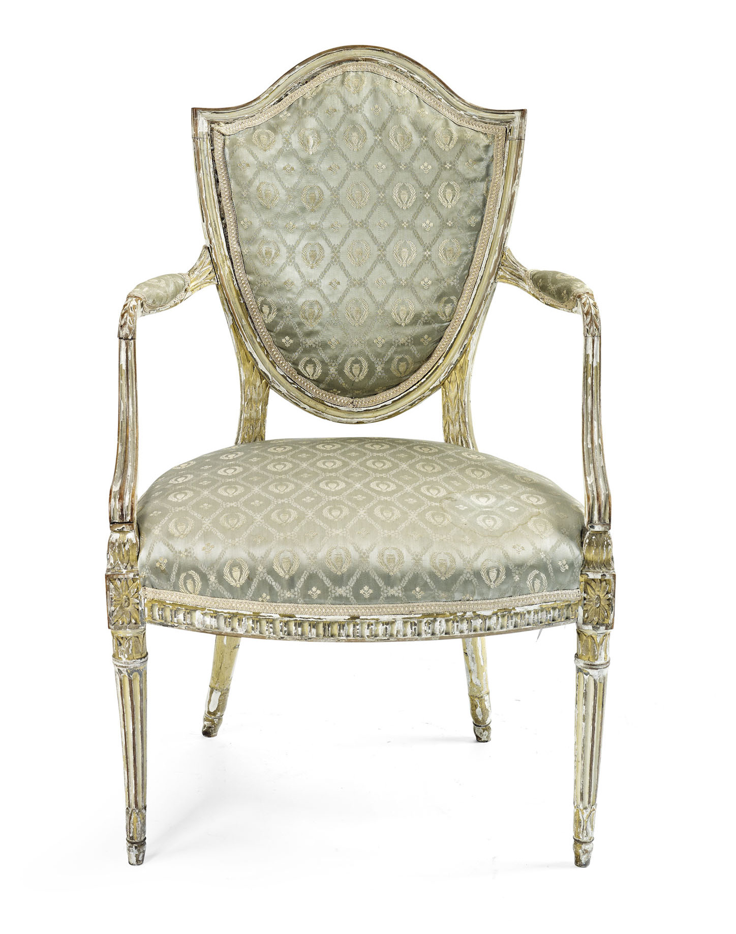 A George III painted and upholstered armchair In the French Hepplewhite style