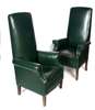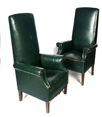 A pair of late 20th century high back green leather armchairs