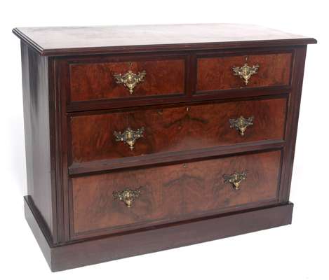 the moulded rectangular top over two short and two long drawers raised on a plinth base