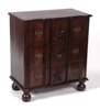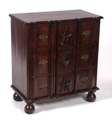 the moulded top over three long drawers carved with the letter A, raised on bun feet