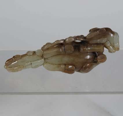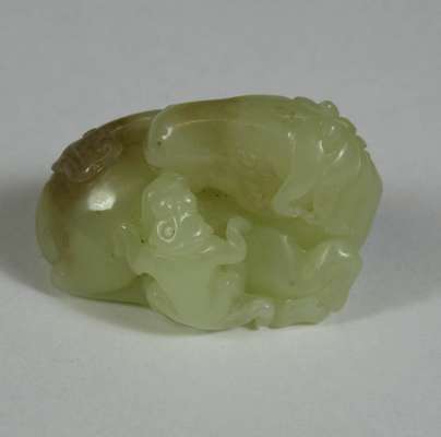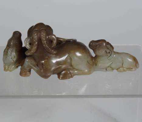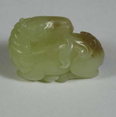 lying down in a row, 12cm wide; and a Chinese jade figure of a recumbent horse, 4cm wide (2)