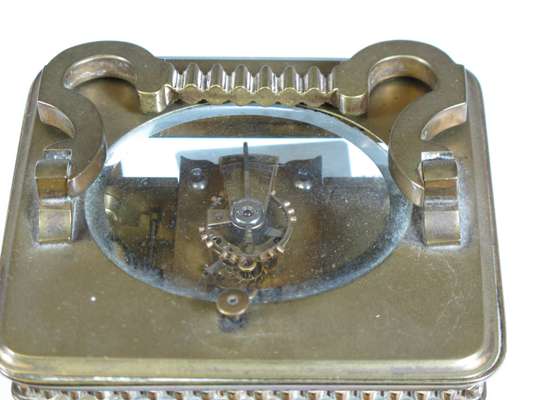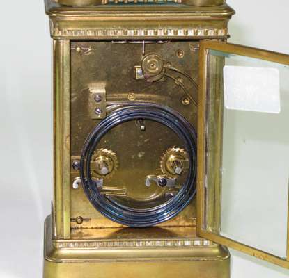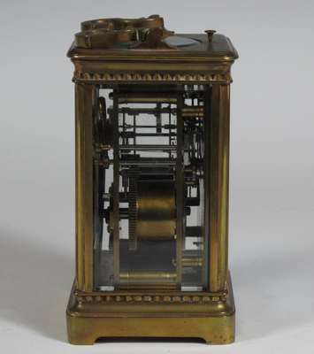 A brass cased repeater carriage clock Marked Wm. Mc. Gregor Paris