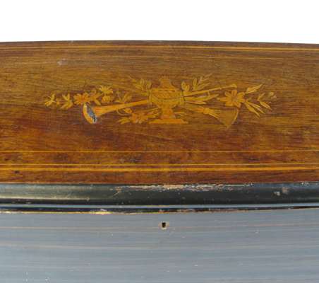 the cover inlaid with trumpets, flowers and an urn, the interior glazed