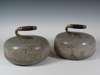 A pair of grey granite curling stones