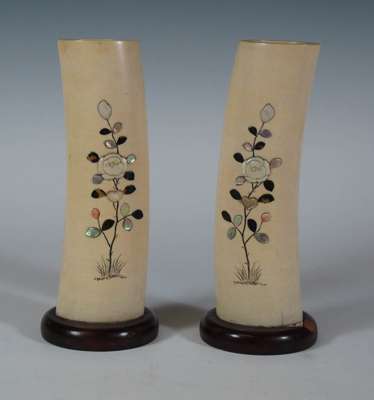 A pair of Japanese shibayama tusk vases Meiji period